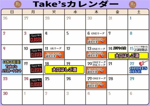 11月のイベントカレンダーです!ご来店を心よりお待ちしております◎